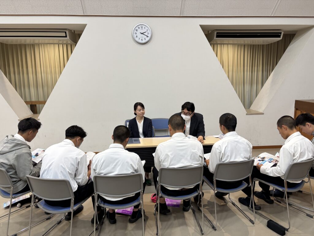 5/26(月)5・6校時、3年 創学コース 自己探求系が、進路ガイダンスと特別対談を行いました。 進路ガイダンスでは、専門学校、大学、企業の方々から説明を受け、進路決定に向けての具体的なイメージを持つことができました。 また、特別対談では、「不安がつきまとう現代で幸せに生きることに」をテーマに、2名の講師の方との対談を行いました。 自分の将来を考えながら真剣に話を聞いている様子に、3年生としての自覚を感じられました。貴重な機会をありがとうございました。