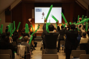 ※ 本校講堂でもパブリックビューイングを実施し、ご両親、ご友人、日頃お世話になっている皆さま、教職員が集まり、声援を送りました。